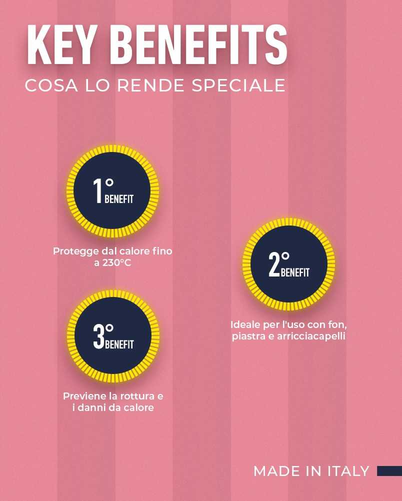 It’s ideal for those who want to protect their hair from heat during the use of thermal tools, such as hair dryers and straighteners, and prevent breakage and damage caused by high temperatures.