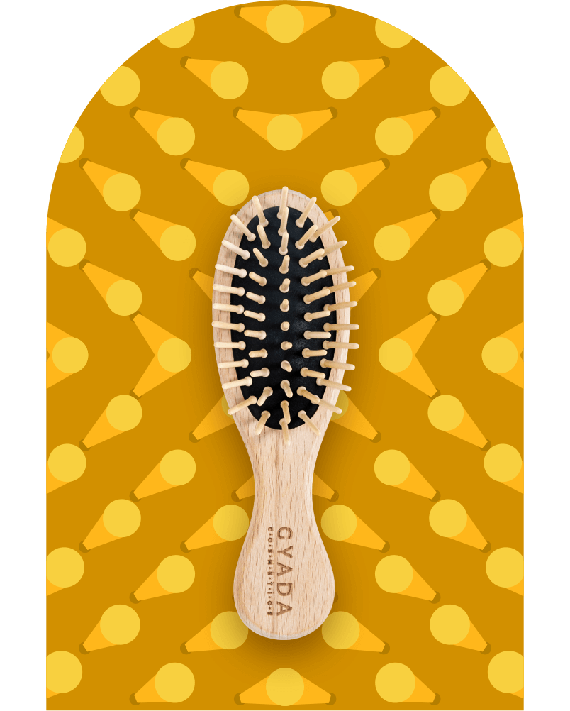 Spazzola ovale piccola con struttura e dentini in legno di faggio. Le sue dimensioni la rendono ideale per i viaggi o per essere portata in borsetta. Adatta a tutti i tipi di capelli.